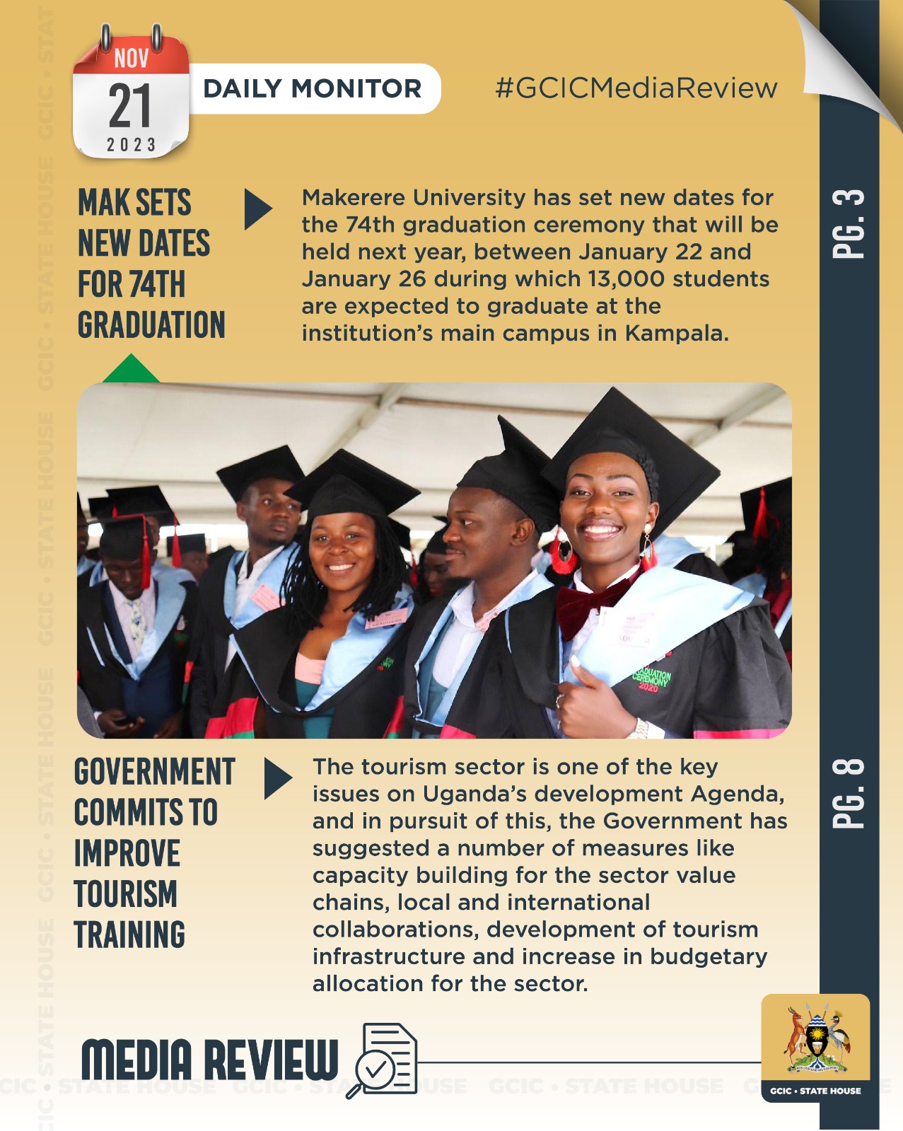 Summary: Makerere University has set new dates for the 74th graduation ceremony that will be held next year, between January 22 and January 26 during which 13,000 students are expected to graduate at the institution’s main campus in Kampala.