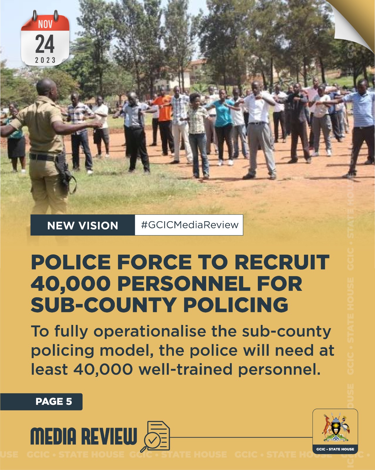 TITLE: POLICE FORCE TO RECRUIT 40,000 PERSONNEL FOR SUB-COUNTY POLICING