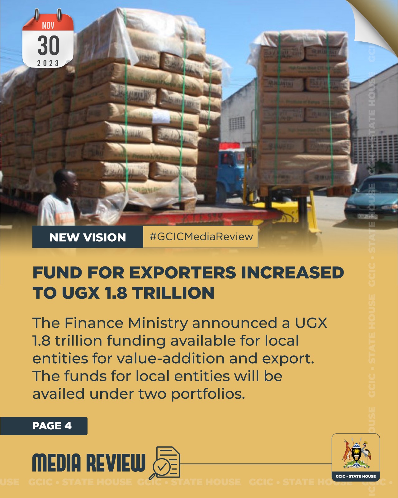 TITLE: FUND FOR EXPORTERS INCREASED TO UGX 1.8 TRILLION