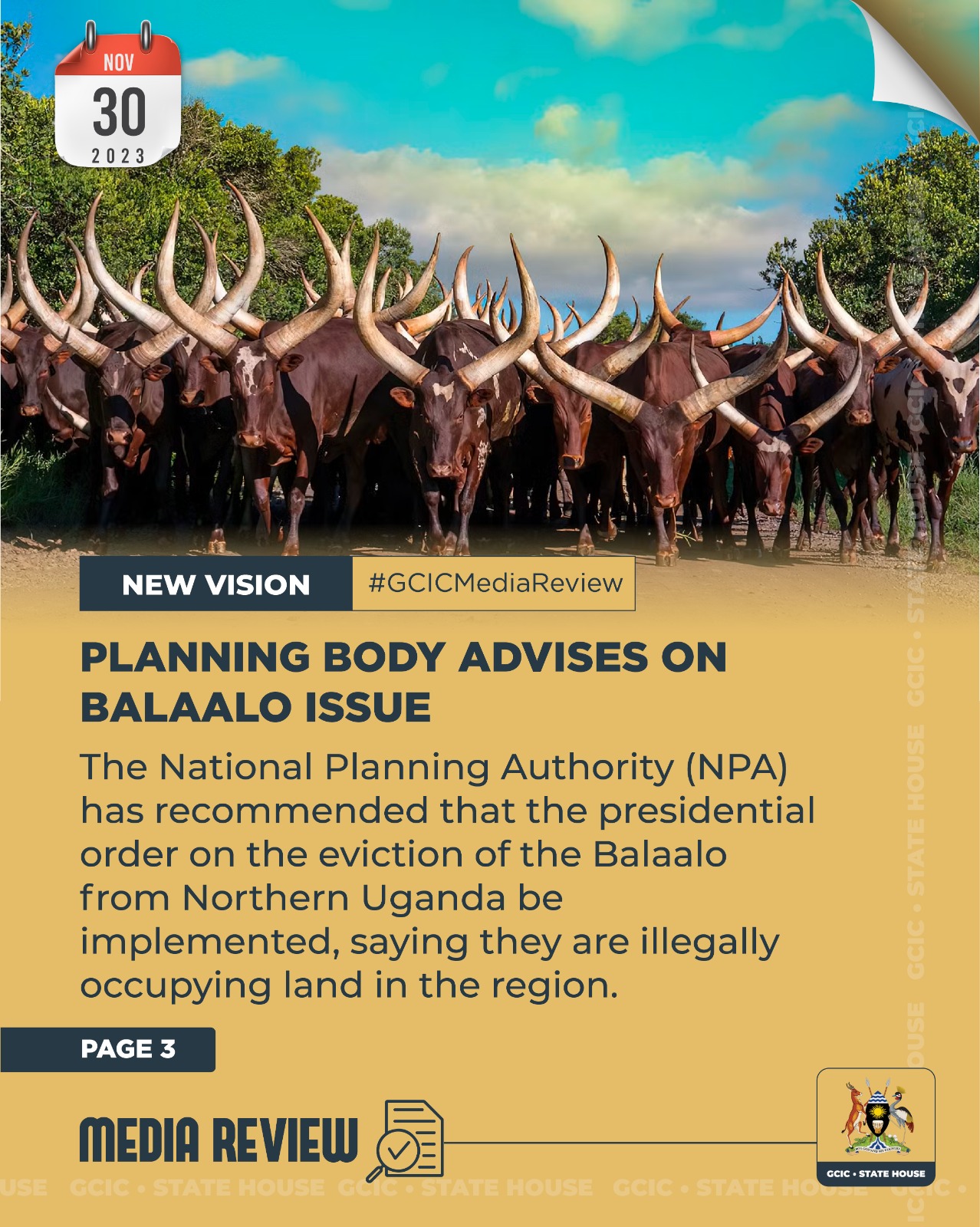 Summary: The National Planning Authority (NPA) has recommended that the presidential order on the eviction of the Balaalo from Northern Uganda be implemented, saying they are illegally occupying land in the region.