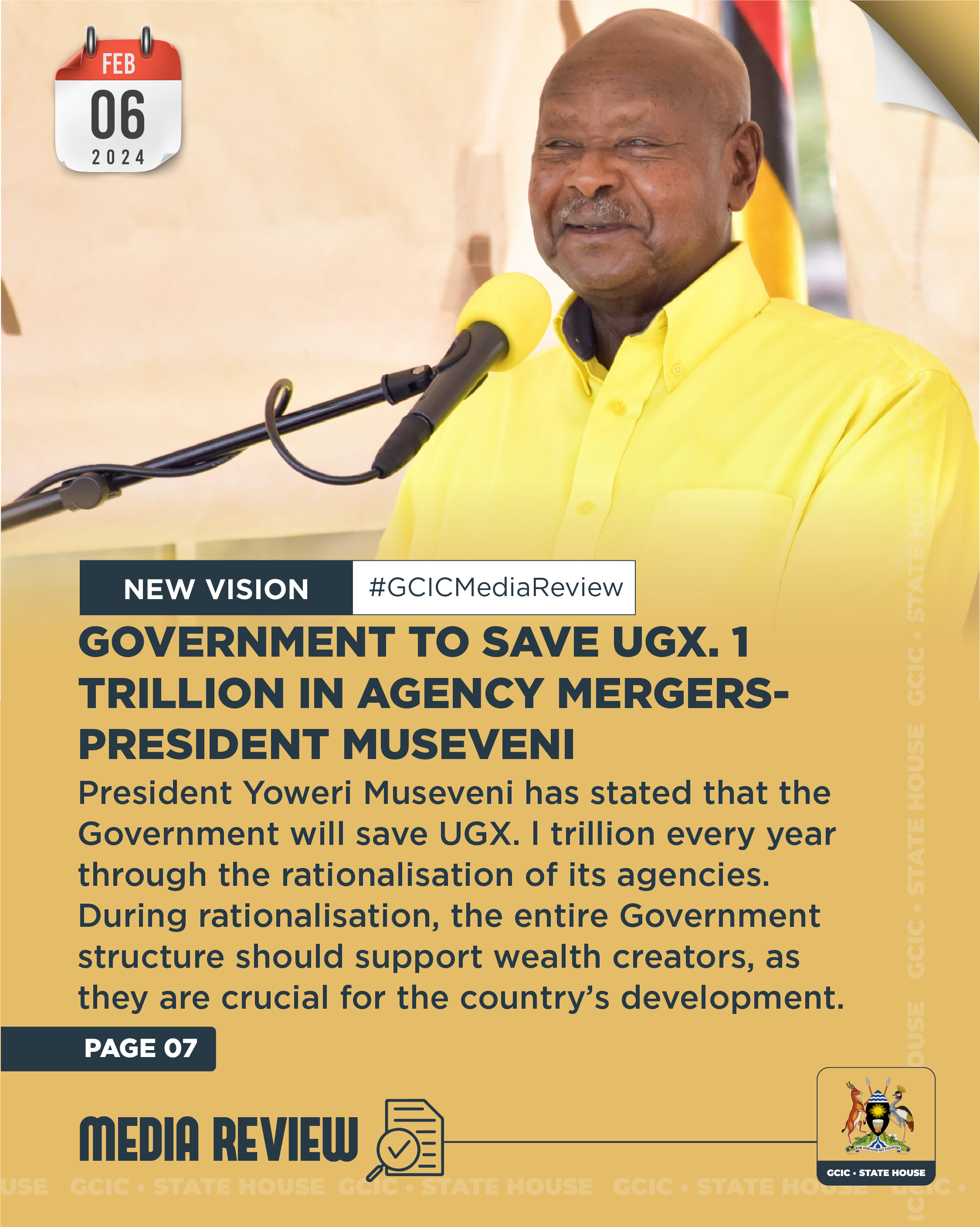 TITLE: GOVERNMENT TO SAVE UGX. 1 TRILLION IN AGENCY MERGERS- PRESIDENT MUSEVENI